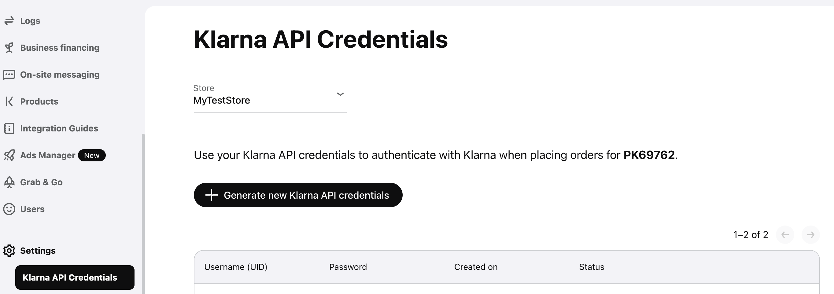 1. Login to your Klarna account --> Go to settings --> “Klarna API Credentials”.