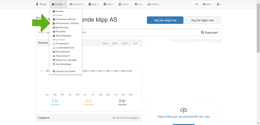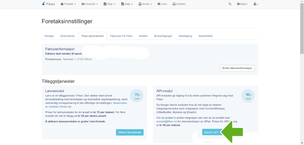 Ta kontakt med Fiken om du trenger hjelp til å aktivere modulen.